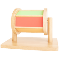 The spinning drum is a classic Montessori material that is perfect for infant play during tummy time sessions! Its beautiful colors and mirror are great for an infant's visual tracking, and a set of tumbling wooden blocks emit a soothing sound while the drum is spinning.