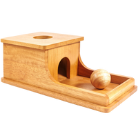 The Object Permanence Box is crafted from rubberwood and sealed with a clear, child-safe lacquer.